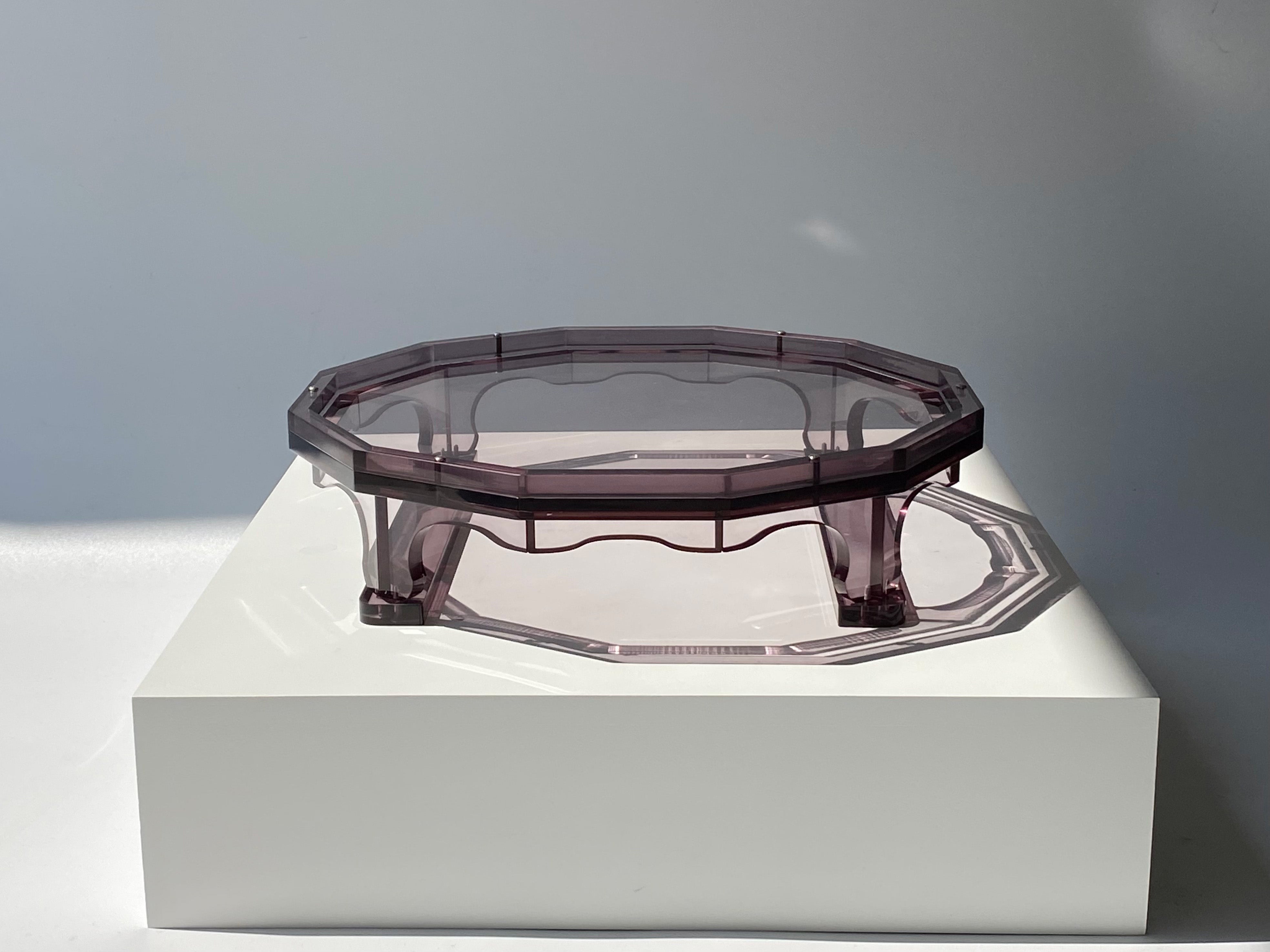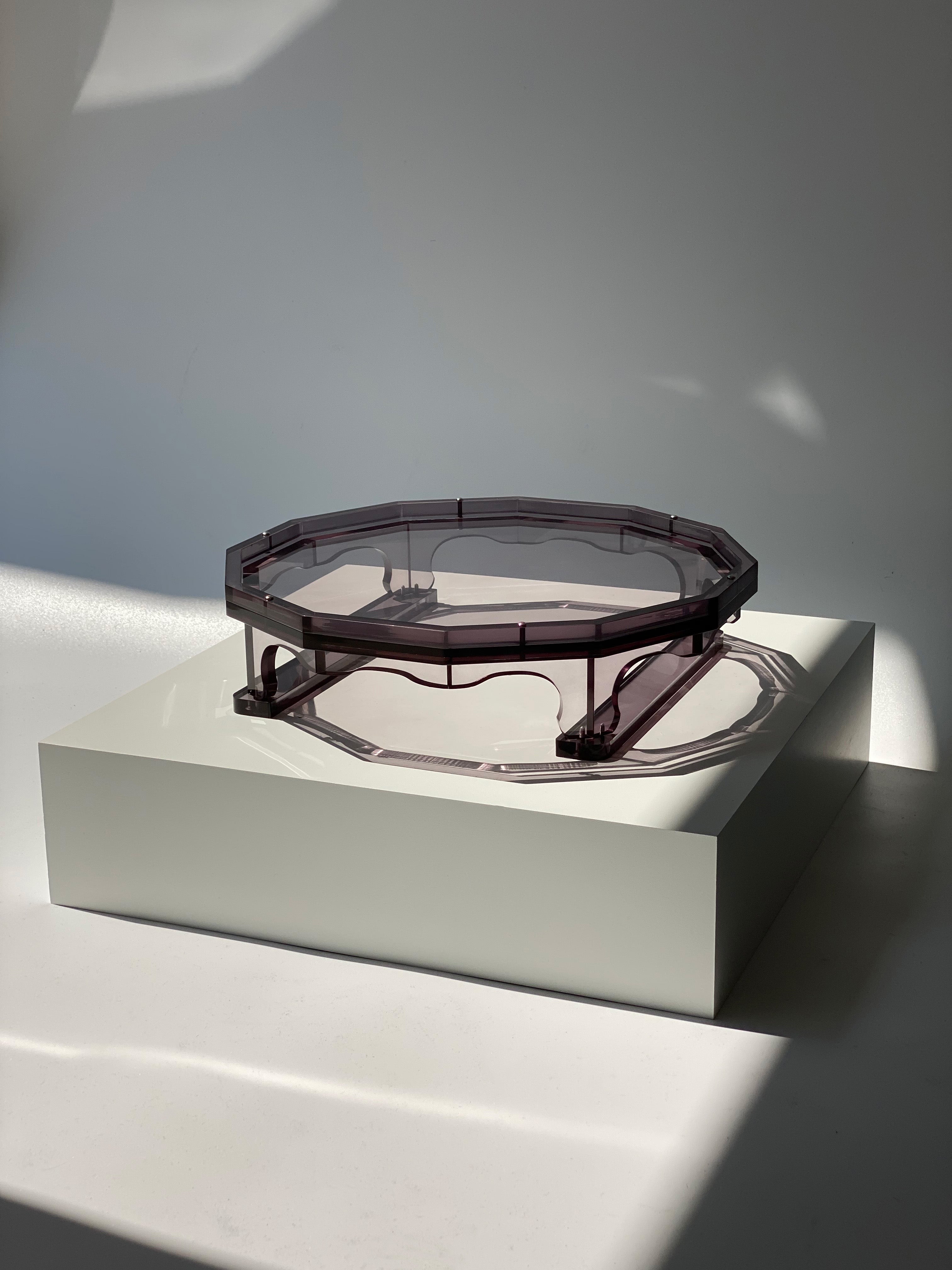 A "Soban" is a small table used for holding dishes or having meals, representing a staple in traditional Corean floor-seating culture. The artist aimed to reinterpret and recreate the soban to align with modern lifestyles, considering materials, sizes, and shapes. The "GaBae Soban" is crafted from premium quality acrylic, allowing for a diverse range of textures and colors.