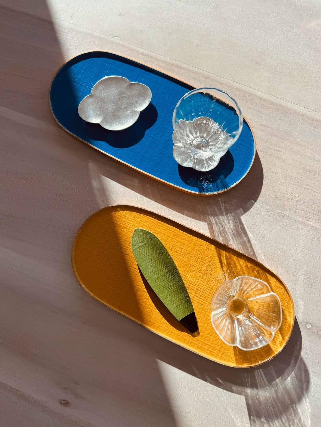 Migaam's custom tea dessert tray is handcrafted and features a pure cotton overlay on Corean mountain ash wood. The coated surface of the tray is resistant to water and heat, ensuring convenience for everyday use. The tray would be ideal for serving tea or organizing cutlery and napkins.