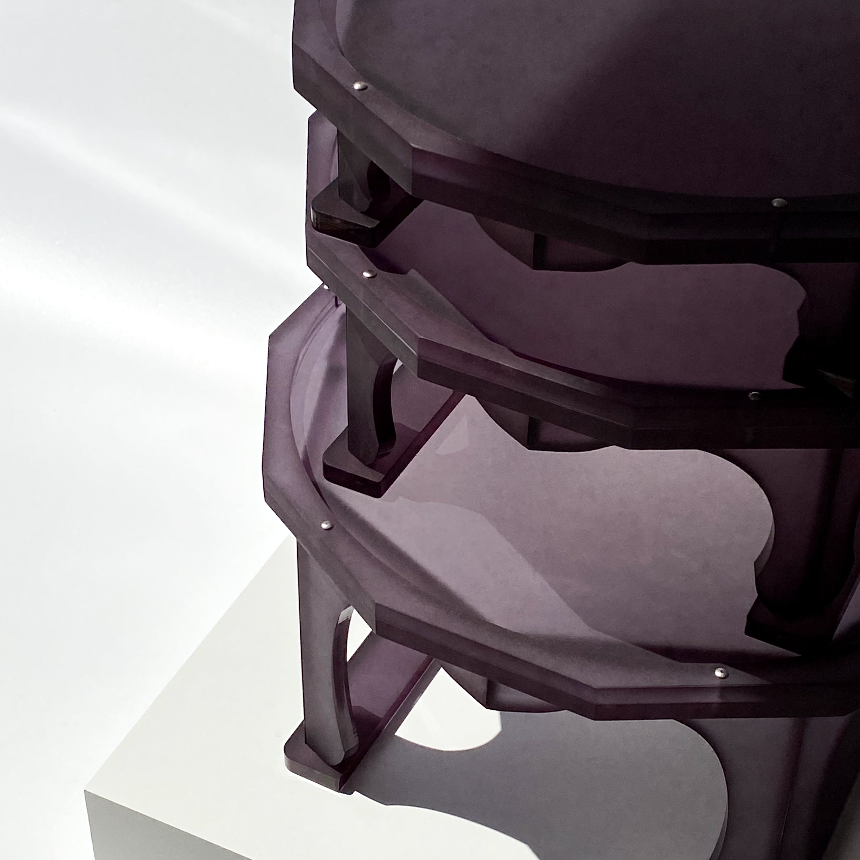 A "Soban" is a small table used for holding dishes or having meals, representing a staple in traditional Corean floor-seating culture. The artist aimed to reinterpret and recreate the soban to align with modern lifestyles, considering materials, sizes, and shapes. The "GaBae Soban" is crafted from premium quality acrylic, allowing for a diverse range of textures and colors.