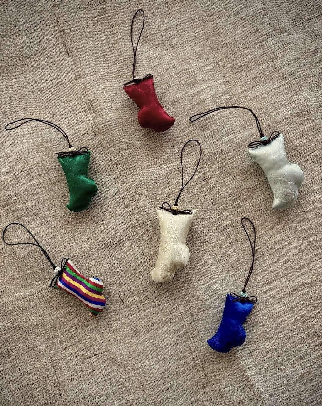 this Silk Beoseon (버선) Charm carries the quiet beauty and symbolism of traditional Korean beoseon—shoes of warmth, protection, and good fortune.