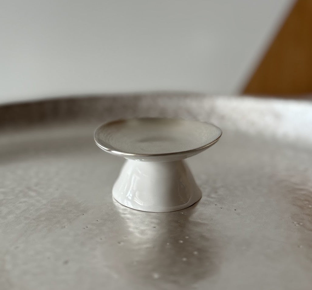 Heami Lee’s Silver Petite Soban begins as fine, unglazed porcelain, meticulously bisque-fired in her Seoul, South Korea studio. Each piece is then coated in pure silver, fired once more, and hand-polished to a radiant sheen. This process is repeated three to four times, creating a luminous, mirror-like surface designed to age with grace—developing a rich, organic patina that tells its own story over time.
