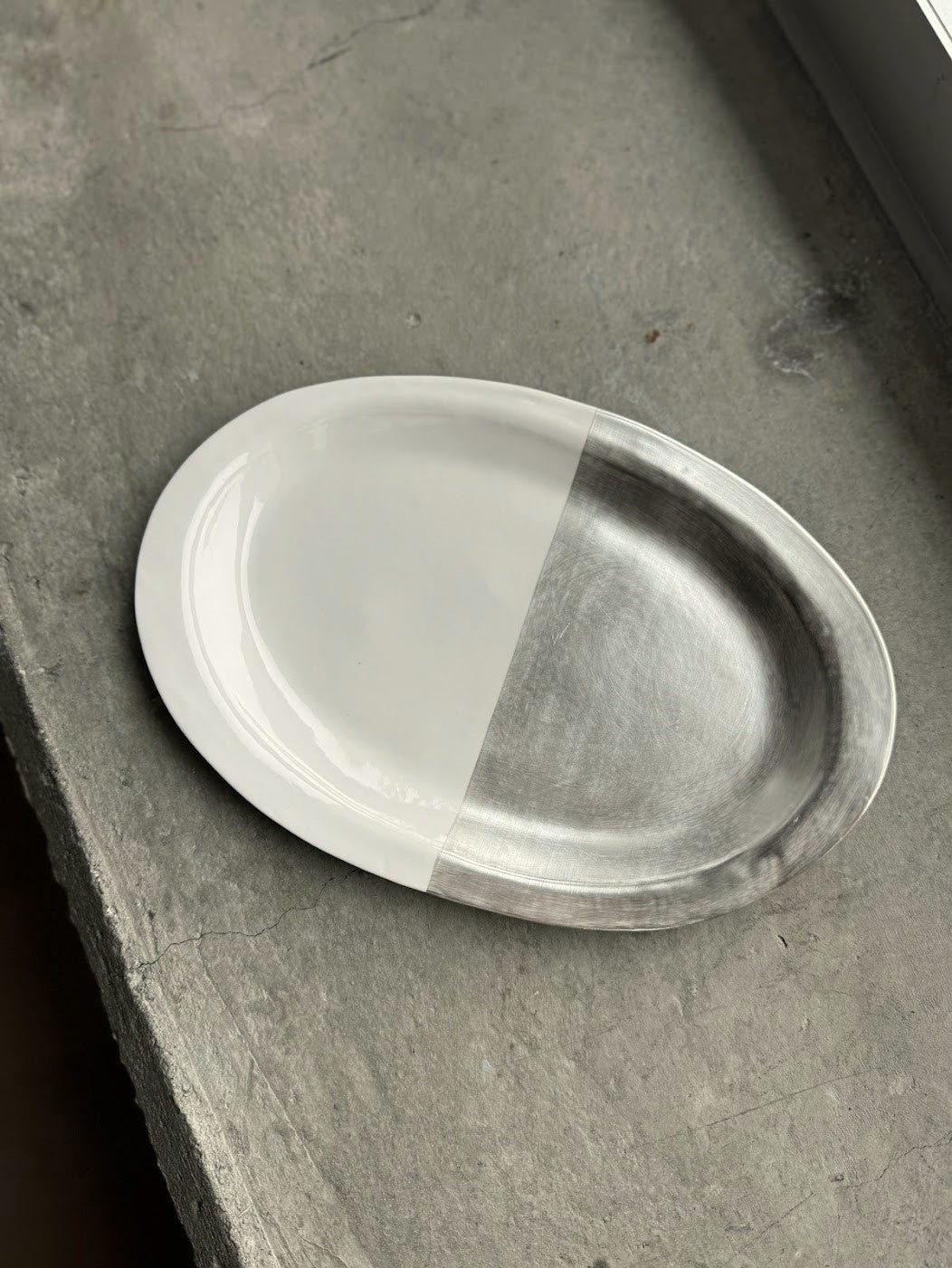 The artist Hea-mi Lee creates versatile objects and tableware using clay as a base material. For each piece, the artist meticulously touches the clay, preserving its natural texture, then delicately layers silver upon it.