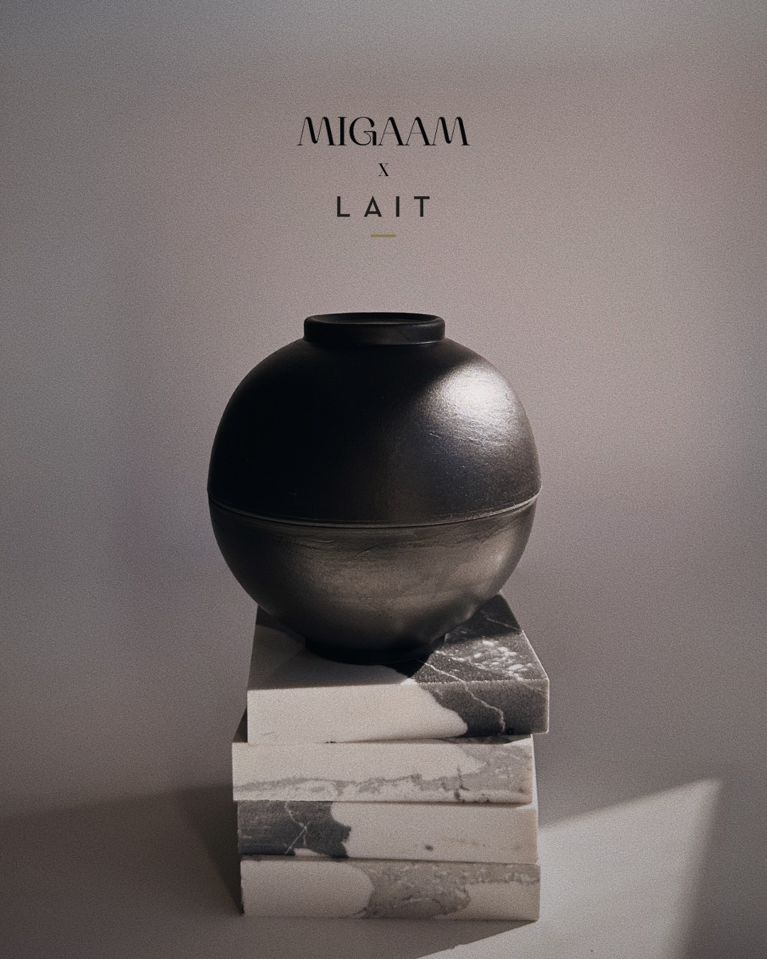 A handcrafted masterpiece custom made by a ceramic artist in Corea then poured with care and infused with the finest fragrances by LAIT, this limited edition collaboration is exclusively available on Migaam.